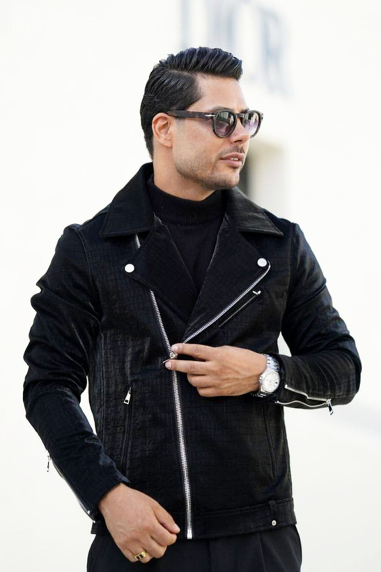 کت چرم سیلیکونی مدل بایکر (زیپ کج) مردانه