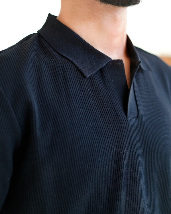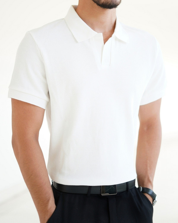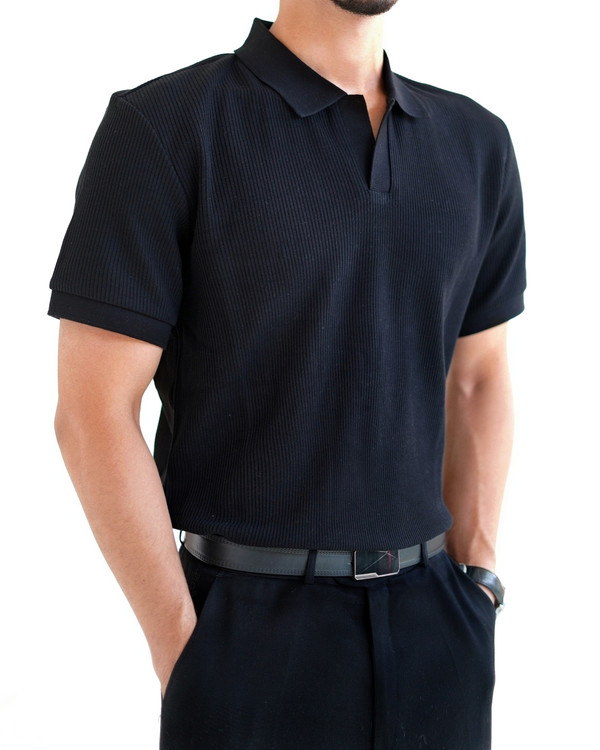 یقهدار کلاسیک بدون دکمه، ترکیبی از رسمیت و راحتی که حس بلوغ استایلی میدهد.