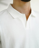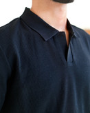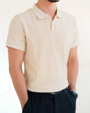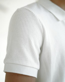 جلوه بافت پارچه : بافت عمودی ریز، جلوه‌ای لوکس و باوقار به لباس می‌بخشد و آن را از تیشرت‌های معمولی متمایز می‌کند.