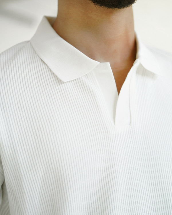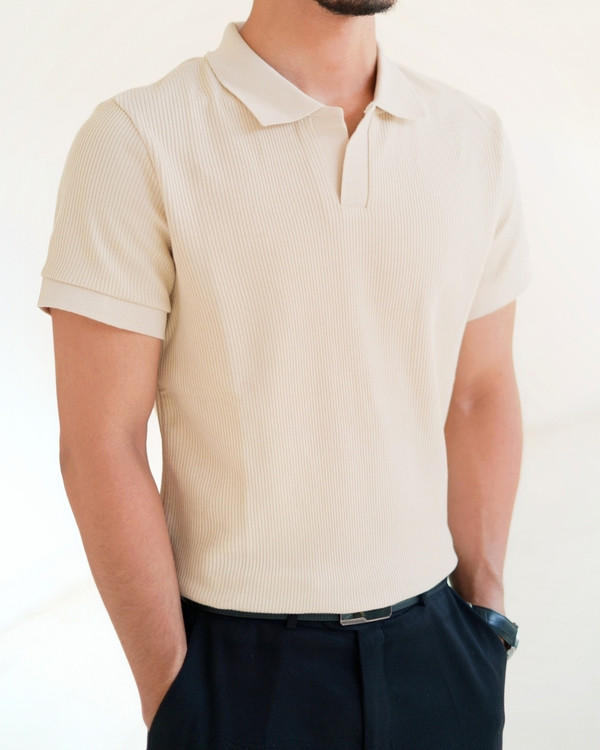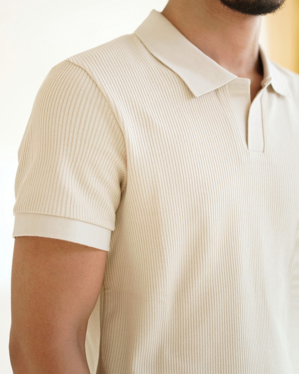 بافت عمودی ریز، جلوهای لوکس و باوقار به لباس میبخشد و آن را از تیشرتهای معمولی متمایز میکند.